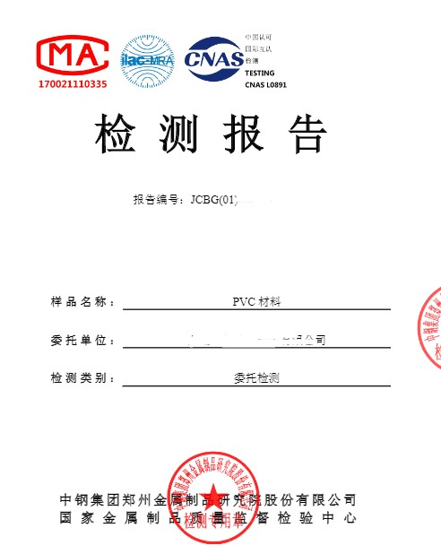 PVC材料檢測報告模板: